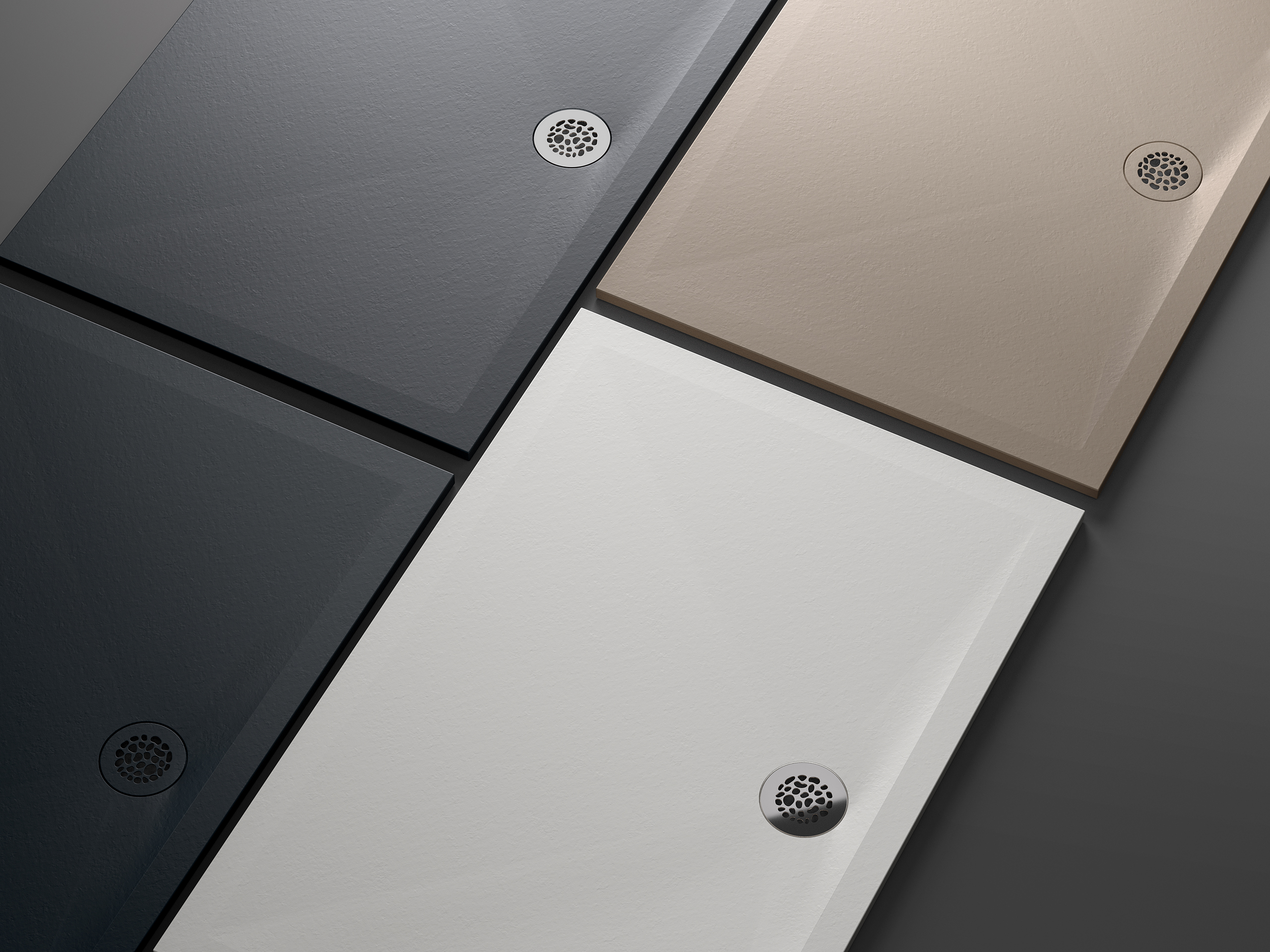 Die extraflache AIR-Duschwanne (nur 20 mm hoch) aus MineraLite mit Gelcoat-Oberfläche bietet die perfekte Lösung für Renovierungen und Neubauten. Erhältlich in drei eleganten Farbvarianten, verleiht sie dem Badezimmer mit ihren organischen Formen und der Natursteinoptik einen modernen, minimalistischen Look. Serienmäßig ist die Duschwanne mit einem extraflachen Ablauf und einer doppelseitigen Abdeckung ausgestattet – eine Seite aus Stahl, die andere farblich passend zur Wanne lackiert, für eine harmonische Optik.