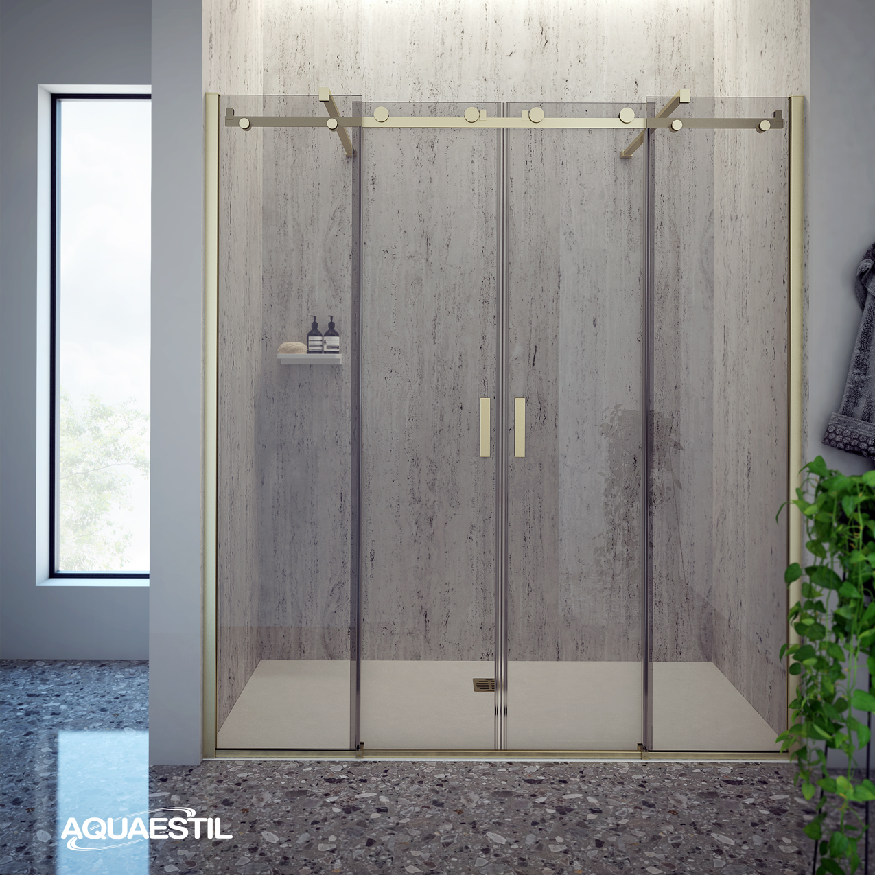 Artego 2D für Nischeneinbau: Eine luxuriöse, besonders robuste Duschwand, konzipiert für größere Nischen mit mittigem Eingang, mit einem fortschrittlichen Schiebesystem aus einer Schiebestange und Rädern größeren Durchmessers. Dies erleichtert Reinigung und Wartung und verleiht dem Badezimmer zudem eine ästhetische Note. Wenige Profile und 8 mm gehärtetes Glas sind herausragende Merkmale dieser Trennwand, die zur Installation auf flachen Duschwannen oder Keramikfliesen vorgesehen ist. Der Griff ist so gestaltet, dass er unter das feststehende Glas gezogen werden kann, was einen größeren Zugang zum Duschbereich ermöglicht. Die Abdichtung zwischen Duschwanne/Fliese und Festwand erfolgt über ein Aluminium-U-Profil. Optional verfügbar ist für alle Artego Screen-Varianten ein 2-Wege-Soft-Close-System. Das System lässt sich nachträglich an einem montierten Bildschirm anbringen und ist in Silber, Matt-Schwarz und Gold erhältlich.