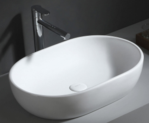 Aufsatzwaschbecken ohne Überlauf und Hahnloch.