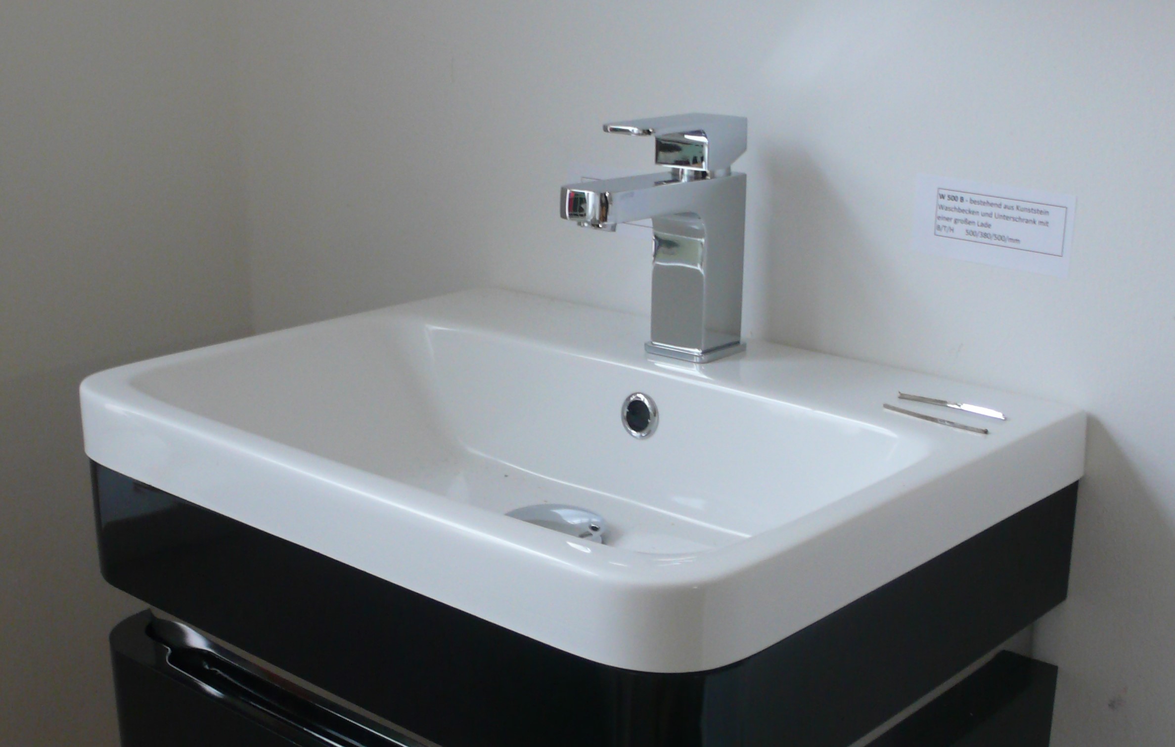 Einbauwaschbecken aus Gussmarmor mit Überlauf und Hahnloch