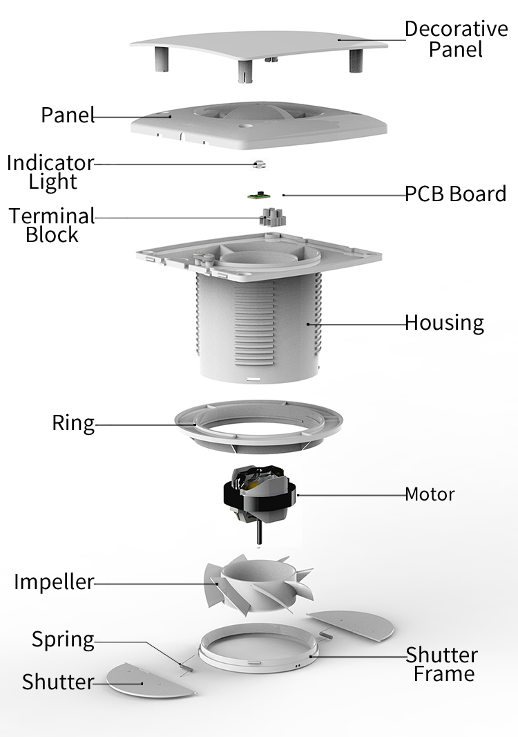 Dieser Lüfter besitzt eine silbern Aluminium Frontplatte, verfügt über einen leistungsstarken Kugellagermotor mit höherer Lebensdauer, ausgestattet mit Feuchtigkeitssensor Regelbereich von 60%-90% der relativen Luftfeuchtigkeit. Keine Zugluft dank Rückschlagklappe, einsetzbar in Bad, Toilette und Hobbyraum für Decken- oder Wandmontage. Am integriertem Zeitschalter können Sie eine Nachlaufzeit von 1-30 Min. einstellen. Desweitere sind die Ventilatoren sehr leise.
