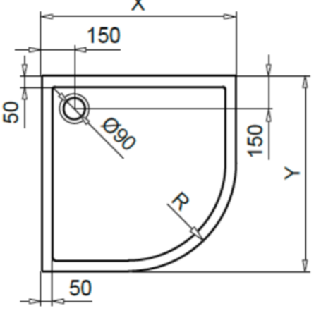 Unsere Viertelkreis-Duschwanne mit einem Radius von 55 cm vereint modernes Design und hohe Funktionalität. Hergestellt aus robustem, mit Glasfaser-Polyester verstärktem Acryl, bietet sie eine langlebige und stabile Basis für Ihr Badezimmer. Die kompakte Form eignet sich ideal für Ecken und platzsparende Installationen, ohne dabei auf Stil oder Komfort zu verzichten.