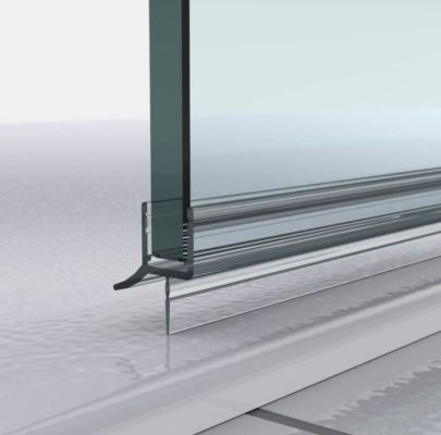 Die Dichtung ist in 1000mm Länge erhältlich, passend für Glasstärke 8mm, hat eine Dichtlippe und eine Abtropfleiste. Die Dichtlippe dichtet senkrecht nach unten zum Boden ab. Die Abtropfleiste an der Innenecke schützt den gefährdeten Bereich und lässt das Wasser als Abtropfkante in die Dusche abfließen.