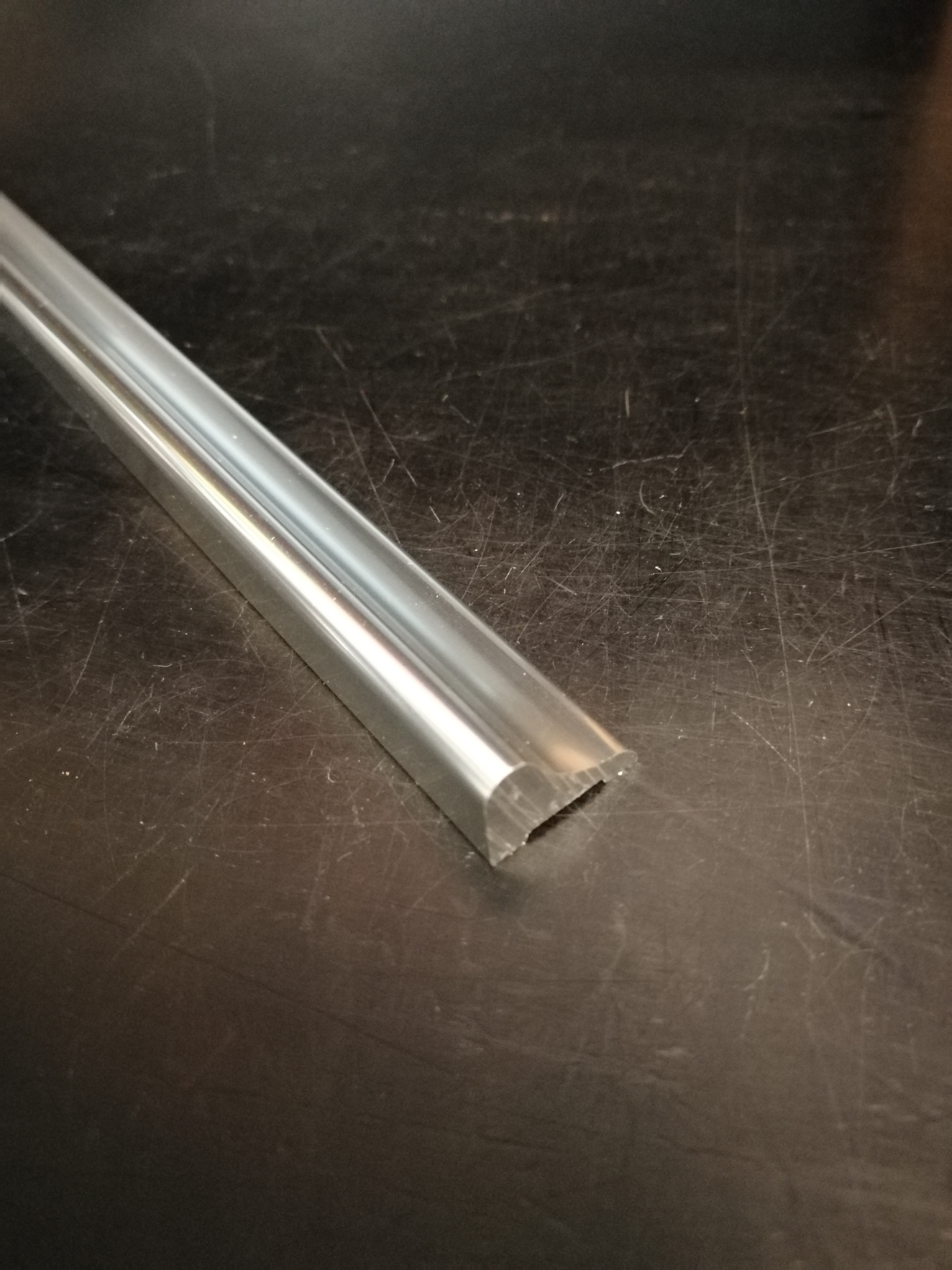 Die Schwallschutzleiste ist ca. 15mm breit und ca. 9mm hoch, aus Aluminium.