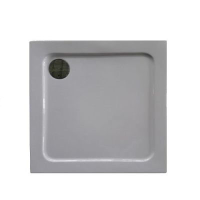 Diese Duschtasse aus Sanitär-Acryl, passend für Duschabtrennungen mit einer Grundfläche von 80 x 80 cm und 90 x 90 cm.