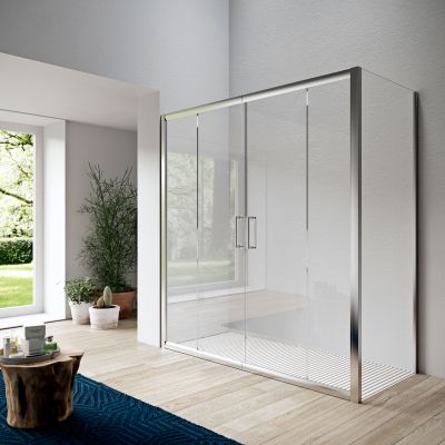 Eckdusche ISY Schiebetüre 4-teilig mit Seitenwand