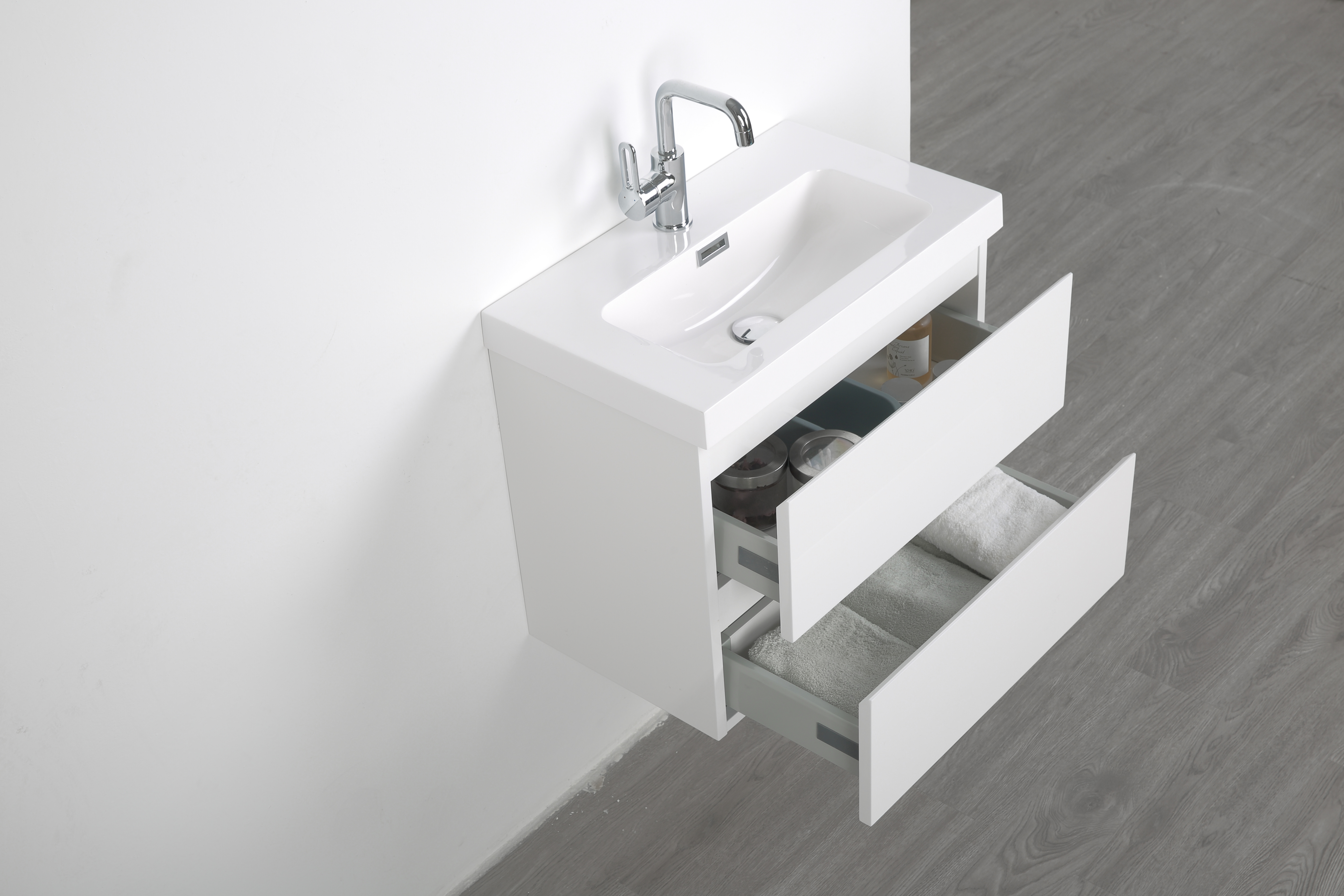 Ausgestattet mit einem hochwertigen Metall-Schubkastensystem, bietet das Badmöbel Stabilität und eine leichte Bedienbarkeit. Eine Soft-Close-Funktion sorgt dafür, dass die Schubladen sanft und geräuschlos schließen.