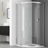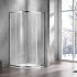Ausführung: Runddusche mit Schiebetüren, 4-teilig, Radius 550 mm, gefertigt aus 6 mm starkem ESG-Sicherheitsglas in Klarausführung. Die Schiebetüren sind mit Doppelrollen oben und unten ausgestattet und sorgen für eine stabile, leichtgängige Führung.