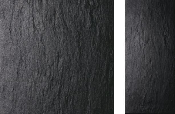 Feinsteinzeug Bodenfliesen, durchgefärbt, glasiert, Stein-Optik schwarz, Naturkante, Oberfläche rau/matt, Rutschfestigkeit R10, frostsicher,