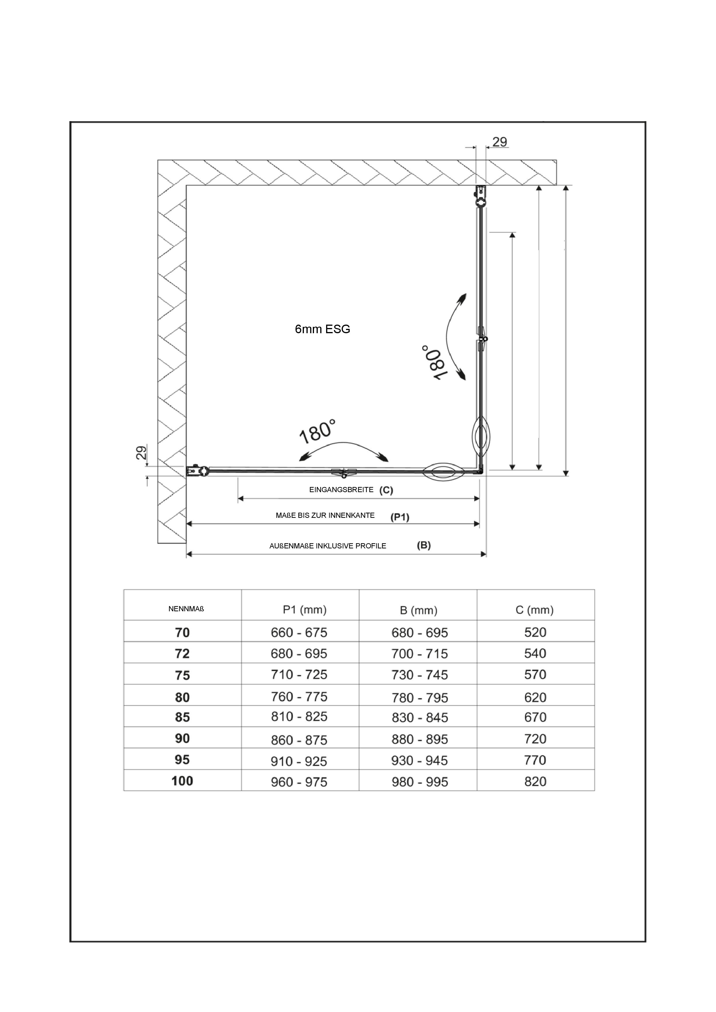 Falttür D 95: (930 - 945) mm