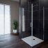 Qualitätsvolle Eckdusche ausgestattet mit Drehtür mit Hebe-Senk-Mechanismus und fester Seitenwand. Hochwertige Materialien und eine technisch ausgereifte Verarbeitung sprechen für die Eckdusche. Der Hebe-Senk-Mechanismus lässt die Tür ganz leicht öffnen und Magnetleisten verhelfen zu einem dichten Verschließen.
