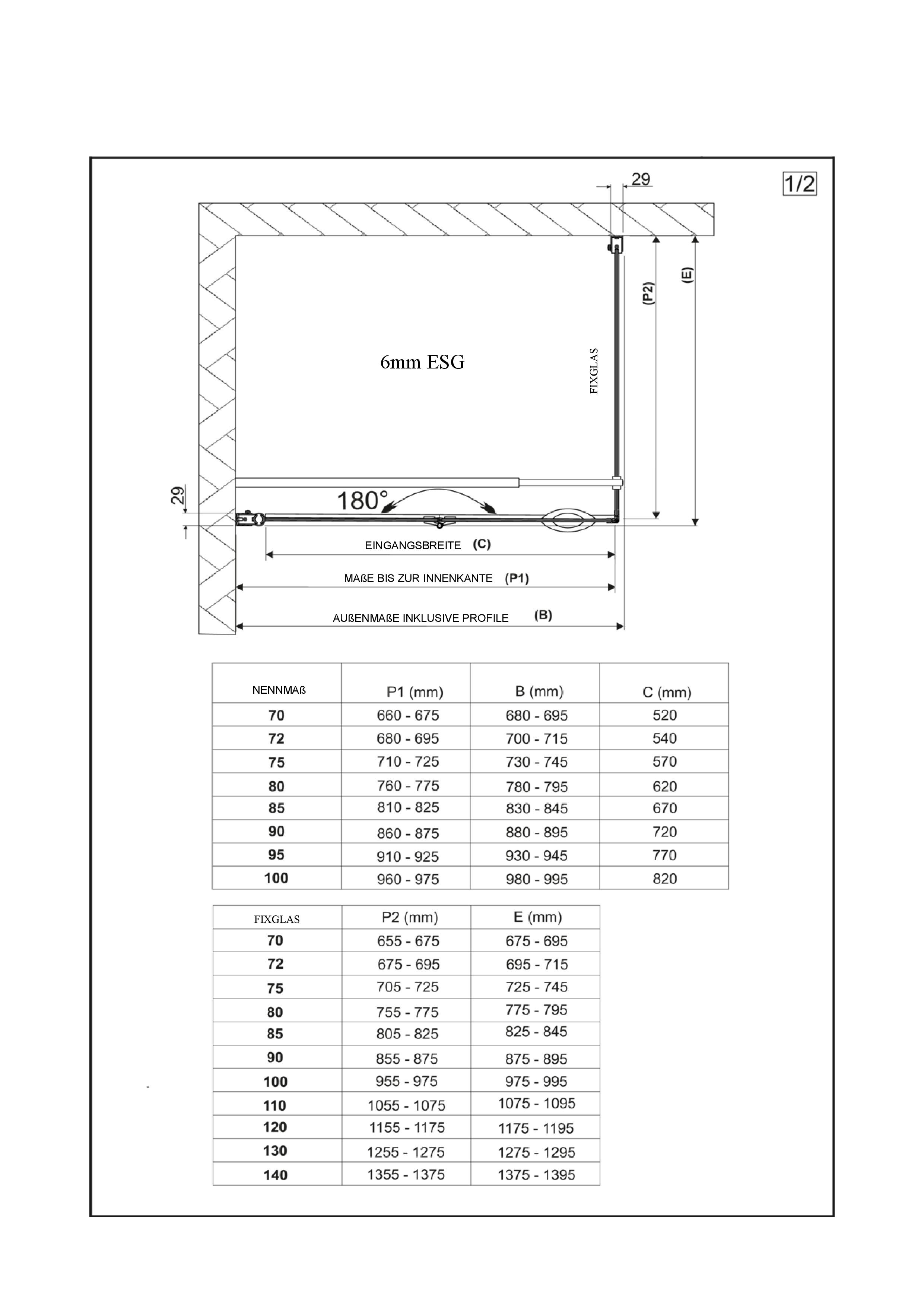 Die Faltdrehtür ist für eine Links-/Rechtsmontage geeignet. Diverse Größen stehen Ihnen über die Artikelvariante zur Verfügung.
