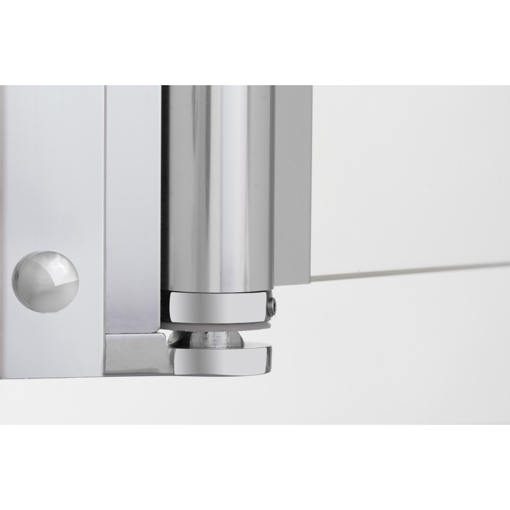 Die Duschabtrennung Greta Plus besteht aus einer eleganten Pendeltür mit Festfeld, das dank der Stabilisationsstange soliden und sicheren Halt findet. Der Hebe-Senk-Mechanismus hebt die Duschtür komfortabel beim Öffnen und Schließen leicht an. Dies erleichtert die Türöffnung und sorgt bei geschlossener Position für eine erhöhte Dichtigkeit. Zudem wird ein Schleifen der Dichtungen über den Schwallschutz verhindert, was für mehr Langlebigkeit sorgt.