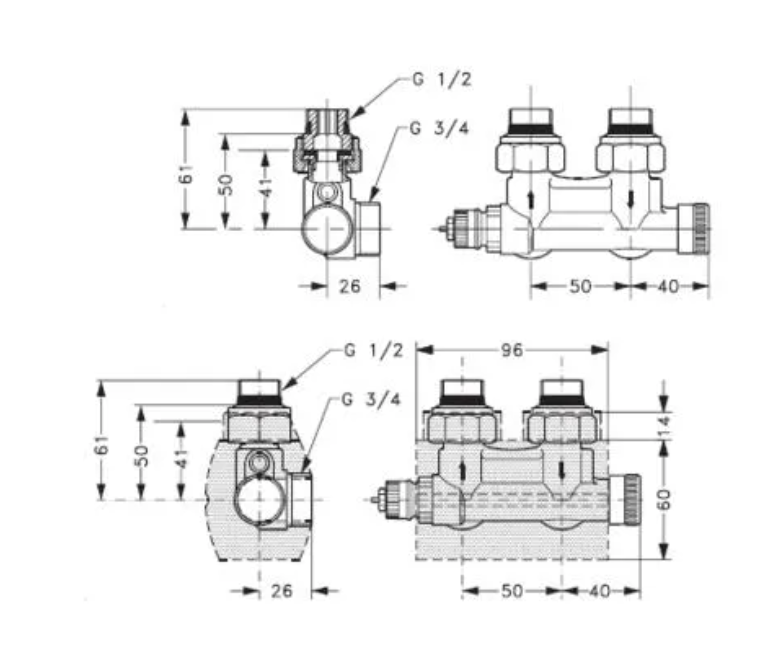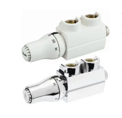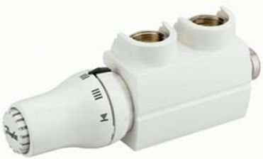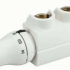 Eckform, für Heizkörper mit integriertem voreinstellbarem Regelventil für Zweirohrbetrieb, inkl. Anschlussstück und Dichtung, matt vernickelt, absperrbar mit Anschlussmöglichkeit für Entleerungs- und Füllarmatur, inkl. thermostatisches Fühlerelement mit Schnappbefestigung gemäss DIN EN 215 und Kunstabdeckung, eckig Achsabstand: 50 mm Druckstufe: PN 10, kvs-Wert: 0,55 m³/h, kv-Wert: 0,02-0,48 m³/h, Voreinstellung 4,5, Ausführung: Eck (Vorlauf links) für Heizkörper mit Anschluss: Rp 1/2 Anschluss Anlage: G 3/4