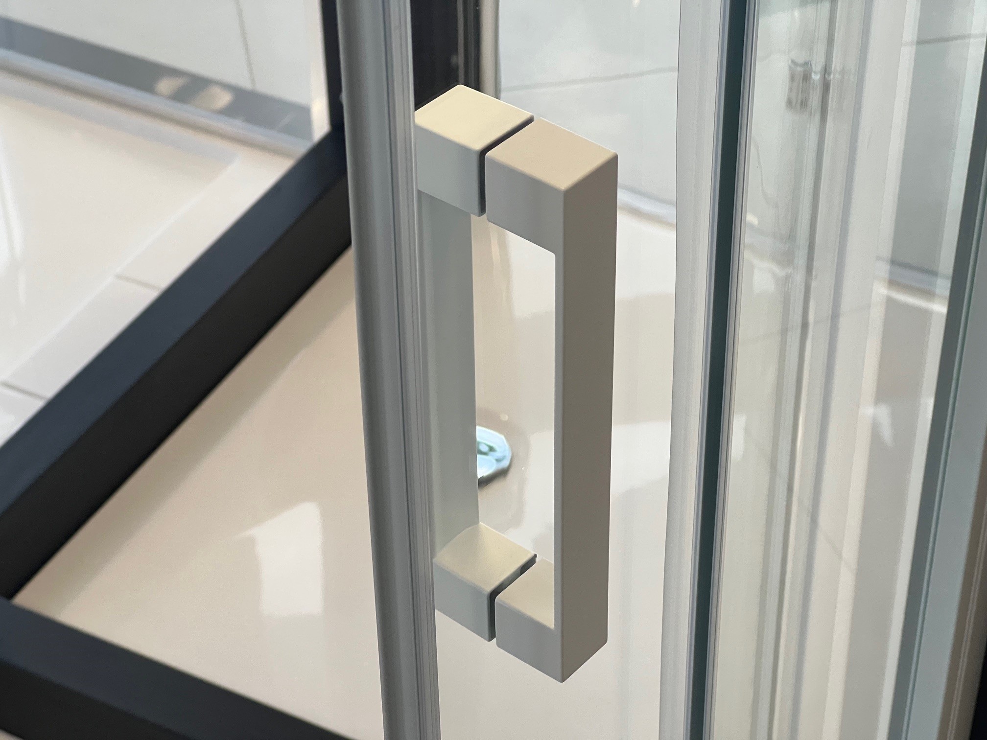 Die integrierte Oberflächenversiegelung mit Anti-Kalk-Beschichtung schützt das Glas nachhaltig vor Neuverschmutzung. Wasser perlt zuverlässig ab, wodurch Kalk- und Schmutzablagerungen deutlich reduziert werden. Für eine besonders einfache und gründliche Reinigung lassen sich die unteren Führungen komfortabel ausklinken.