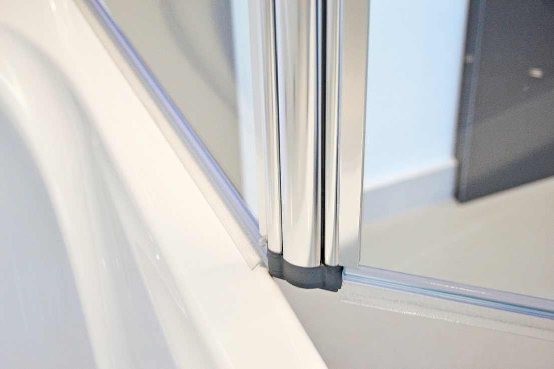 Dieser Wannenaufsatz ist falt- und schwenkbar. Eine Anti-Kalk-Beschichtung auf das 6mm ESG-Sicherheitsglas lässt Wasser und Seifenreste ganz einfach abperlen. Die Reinigung gestaltet sich mühelos. Ein komfortabler Hebe-Senk-Mechanismus lässt die Glaswand ohne Kraftanstrengung öffnen und schließen. Das Alu-Seitenprofil erlaubt einen Ausgleich von Wandunebenheiten von bis zu 20 mm.