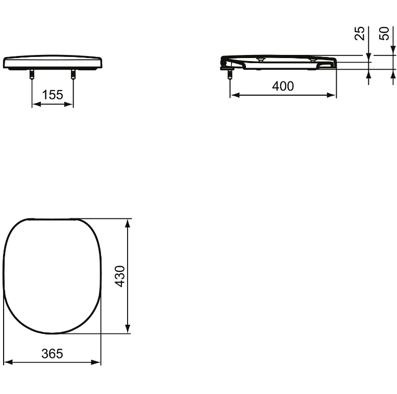 WC-Sitz mit Deckel Typ SE712701 zu Connect Idealstandard WC mit Edelstahlscharniere, Absenkautomatik, abnehmbar, aus Duroplast, weiß.