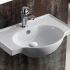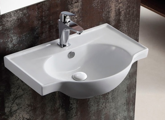 Wand-Waschbecken, wandhängend mit Überlauf.