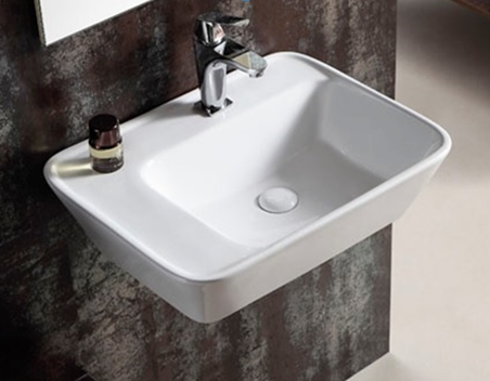 Wand-Waschbecken, wandhängend oder auch als Aufsatzwaschbecken, ohne Überlauf.