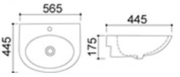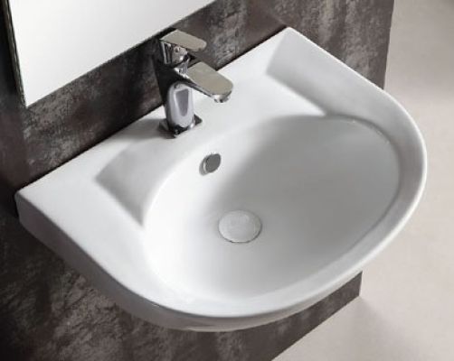 Wand-Waschbecken, wandhängend mit Überlauf.