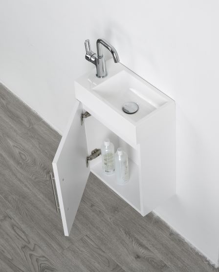 · Reversibles Design: Sowohl die Tür als auch das Waschbecken sind reversibel, sodass Sie die Anordnung flexibel anpassen können.