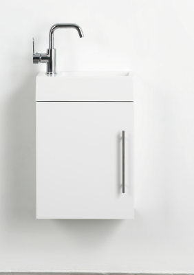 Das Badmöbel-Set in platzsparendem 46 cm Design ist die perfekte Option für ein elegant gestaltetes Gästebad. Das Badmöbel-Set umfasst einen Waschtischunterschrank und ein Waschbecken aus Mineralguss.
