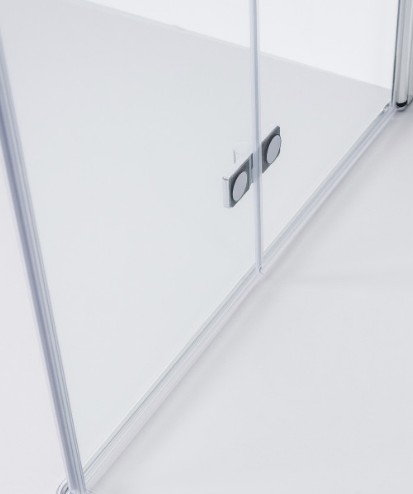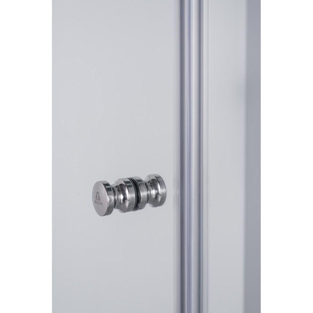 Die Tür besteht aus einer 6 mm starken, klaren Einscheibensicherheitsglas (ESG), das nicht nur für eine elegante Optik sorgt, sondern auch höchste Sicherheitsstandards erfüllt. Dank der integrierten Anti-Kalk-Beschichtung gestaltet sich die Reinigung besonders einfach und wartungsarm.