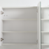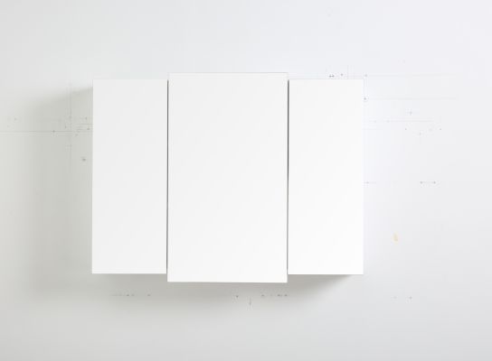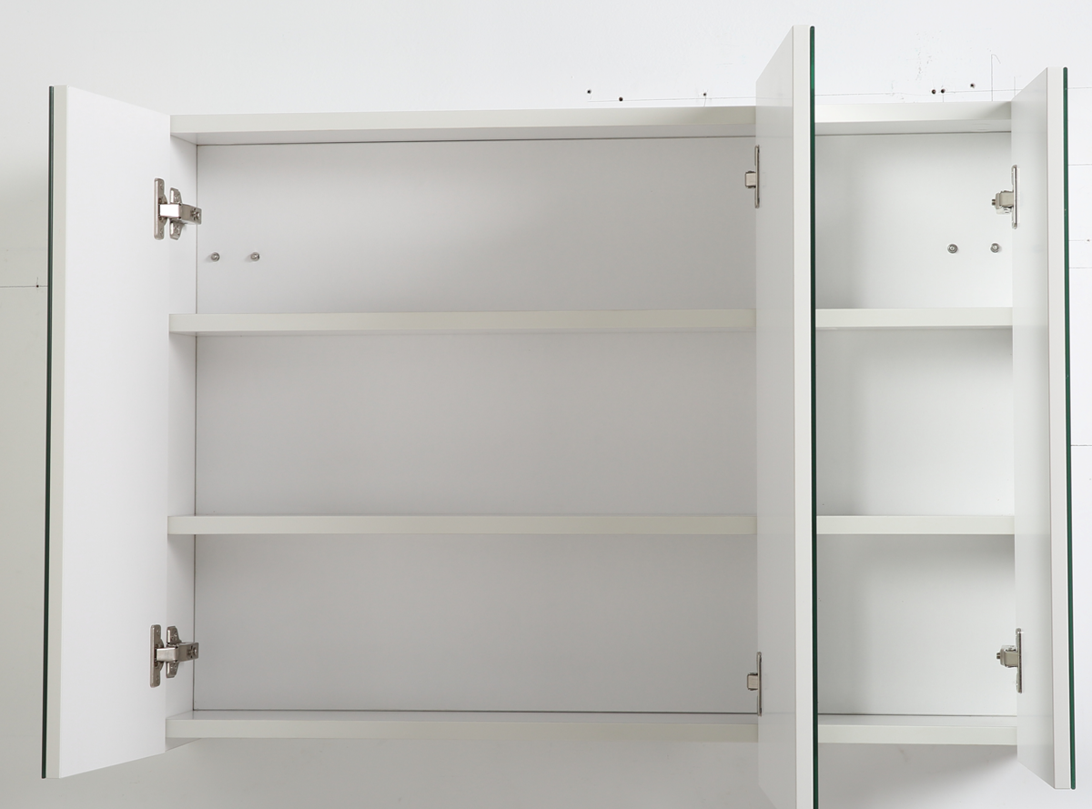 Der Spiegelschrank mit drei ungleichen Spiegeltüren ohne sichtbare Griffe fügt sich stylisch in die Badezimmereinrichtung ein. Der Innenraum mit zwei Einlegeböden bieten viel Stauraum für Badutensilien und ermöglichen eine übersichtliche und geordnete Aufbewahrung.